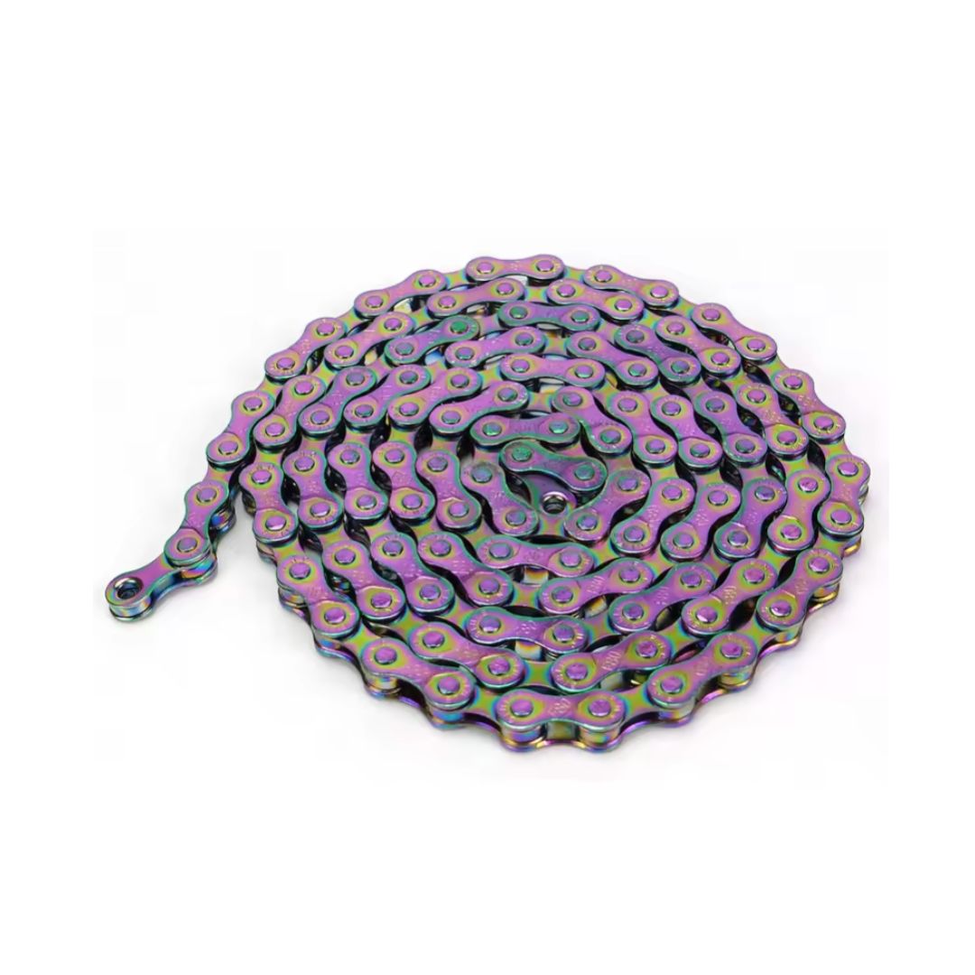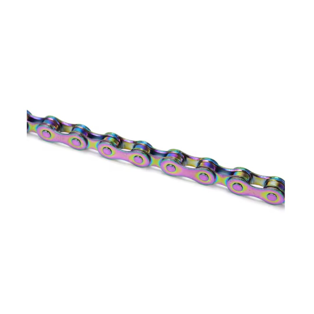 Apportez une touche de fun à votre vélo avec cette chaîne 8 vitesses aux couleurs arc-en-ciel éclatantes. Avec ses 116 maillons, elle assure une transmission fluide et fiable tout en ajoutant une note joyeuse à vos sorties. Parfaite pour ceux qui veulent allier performance et style unique sur leurs trajets quotidiens ou leurs aventures.