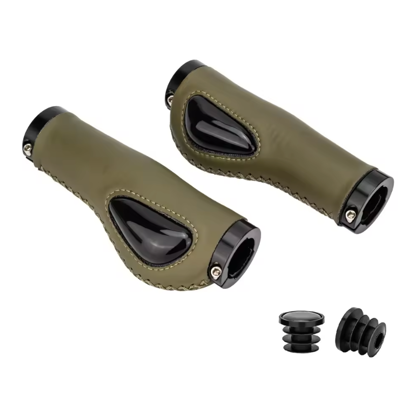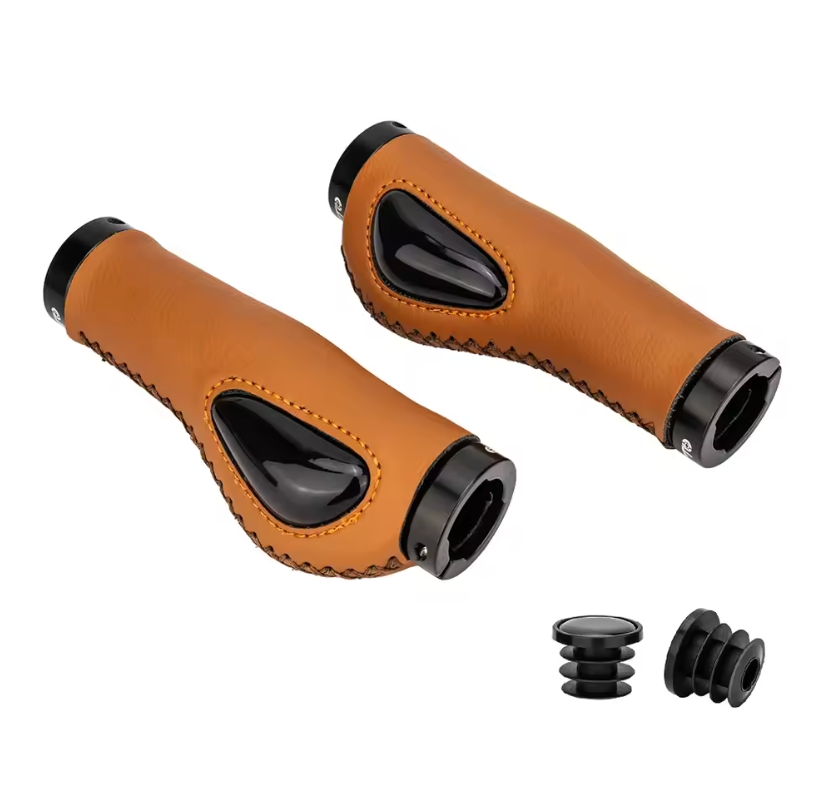 Des poignées Top Moumoute originales avec un style vintage en imitation cuir, un alliage d'aluminium solide, et un coussin en gel pour un confort optimal. Profitez de la résistance anti cassement et facile à installer. Elles se vissent donc ne tournent pas. Idéal pour les vélos de ville et les promenades ensoleillées !